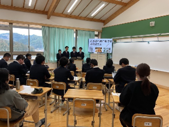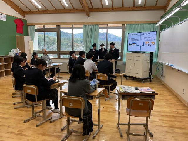 先日、長い期間取り組んできた京北ふるさと未来科の発表を行いました。どのように説明すれば相手に伝わるのかを考えて試行錯誤しながら取り組んでいました。発表当日は、京北商工会の方々や7年生、9年生から質問をしていただき、緊張しながらも一生懸命に答えようとする姿が見られました。どうすれば京北が発展するのか。自分たちが考え出した答えを生かして過ごしてほしいと思います。