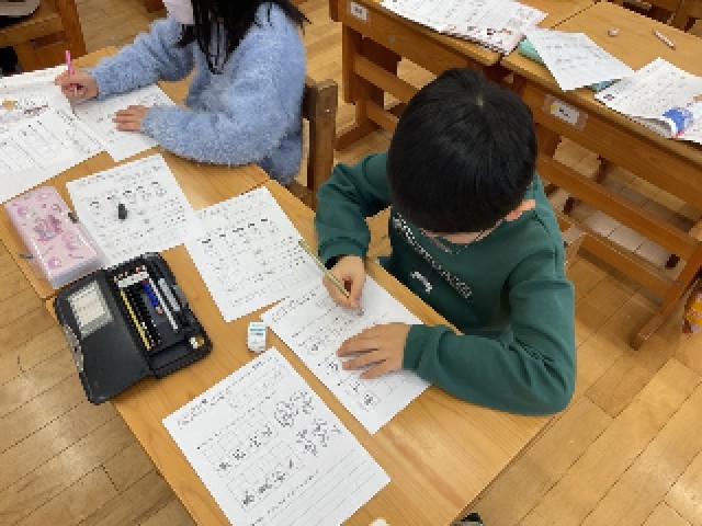 これまでの国語の学習を土台にしながら、正しい姿勢・筆順・文字の形を大切にして、書写の学習を進めてきました。子どもたちは学習を重ねるごとに、集中して丁寧に書こうとする姿勢が育ち、大きな成長が見られました。3年生では、いよいよ毛筆を使った書写が始まります。今身につけた「姿勢」「筆順」「文字の形を見る力」は、筆を扱うときにも大きな力になります。これからも、丁寧に書こうとする気持ちを大切にしてほしいと思います。
