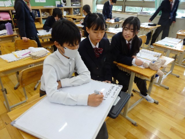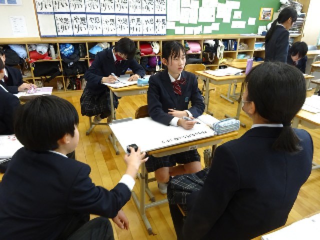授業の前半は「思いやりの心とはどういう心なのだろう」というテーマで話し合い、後半は思いやりの心をもつために大切なことを考えました。どのグループも交流が活発に行われている姿が印象的でした。