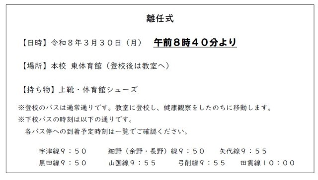 【変更連絡】離任式開始時刻について