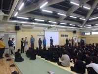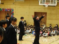 修学旅行先の東京に関するクイズゲームで盛り上げった後、先生方から1年間の振り返り...
