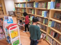 図書館での学習の様子です。自分で本を探したり、返却したりすることができるよう、本...