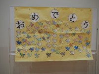 式場の外には、前期課程の児童が作成したメッセージが飾られています。