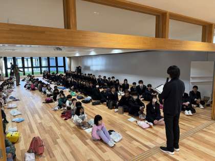 明日の開校式に向けて 公開日 2025/04/03 更新日 2025/04/03 学校の様子 本日開校式に向けてのリハーサルを行いました。 標準服を着た5年生以上の児童生徒や。9年生と手をつないで入場する2年生の姿など、義務教育学校の始まりに期待が膨らみました。