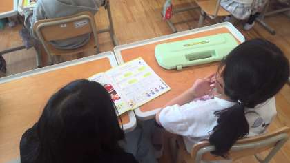 鍵盤ハーモニカを用意したり、歌を歌ったりしています。