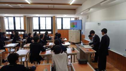 8年生は、席替えとGIGA端末の利用の仕方について説明していました。