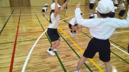 体育館で「体ほぐしのうんどうあそび」をしました。