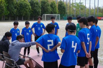 たくさんのチャンスを作り、危なげない試合展開ではありましたが、最後の一本が出ないまま前半を終えました。ハーフタイムには、「もっとシンプルにやろう!」と攻撃の修正点について確認をしていました。