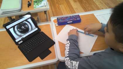 国際教室(日本語指導)で「教科書の音読が難しい…。」という子どもはふりがな付の教科書を使って指導者と交代で読んだり、「ひらがなは覚えたけどカタカナがまだ苦手…。」という子どもは好きなキャラクターの名前を書いて覚えたりしています。