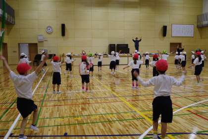 体育館では2年生がノリノリでダンスを踊っていました。どの子も笑顔ですごく楽しそうでした。
