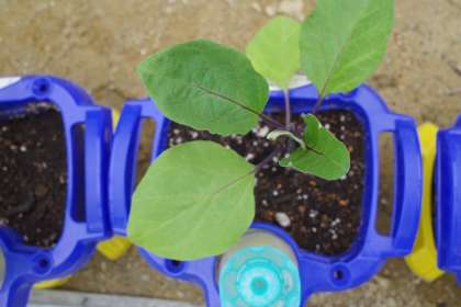 2年生は、植木鉢にいろいろな野菜を育てています。何の植物か分るでしょうか?是非、お子さんに聞いてみてください。