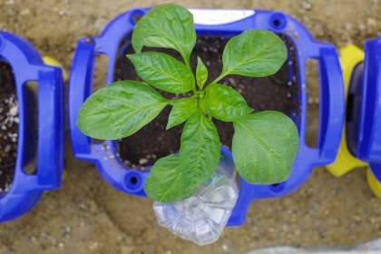 2年生は、植木鉢にいろいろな野菜を育てています。何の植物か分るでしょうか?是非、お子さんに聞いてみてください。