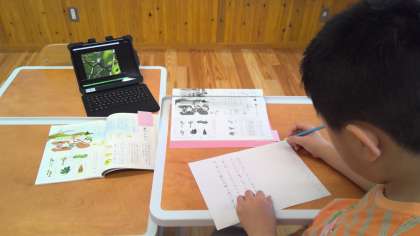 今日は、国語の学習で取り組む内容について一緒に音読をしたりわからない言葉を調べたりしてから、書く活動にも取り組みました。