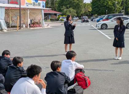 伊豆ぐらんぱる公園での入村式のようすです。 この後、バスに乗り、各ペンションへ向かいます。