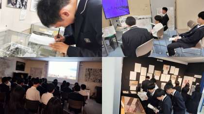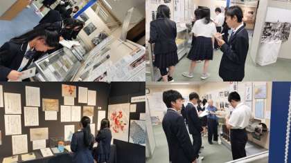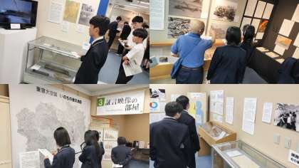 東京戦災資料センターでの見学の様子です。 真剣な表情で様々な資料を見ています。