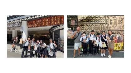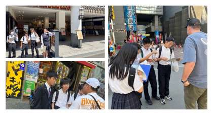 難波グランド花月の様子です。 一所懸命にインタビューをしています。