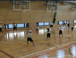 体育の学習で、フープを使った用具遊びをしました。