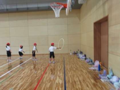 フープを腰や腕で回したり、ころがしたりして、様々な動きを楽しみました。