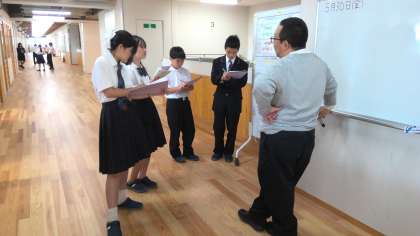 7年生では、英語の授業の一環で英語で先生インタビューにチャレンジしました。