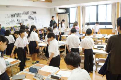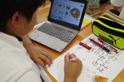 6年生は自分の好きなことについて短歌を作り、互いの作品の工夫の良さについて、意見を交わしていました。