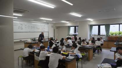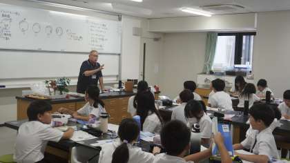 5年3組は理科の学習。 メダカの卵の育ち方を学んでいました。
