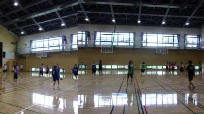 7年2組は「体育」、 7年3組は「国語」の授業です。 楽しそうにバレーボールに取り組んでいました。