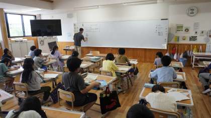 3年2組は算数の学習。 割り算の問題に取り組んでいました。