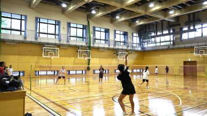 バドミントン部は第1体育館で練習しています。