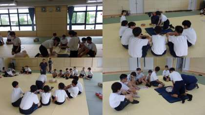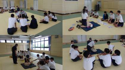 普通救命講習 公開日 2025/06/24 更新日 2025/06/24 8年生 昨日に引き続き、今日は8年1・2組が 5・6限に普通救命講習を受講しました。 心臓マッサージやAEDの使い方など、 少し緊張と照れた様子もありましたが、 しっかりと話を聞くことができていました。