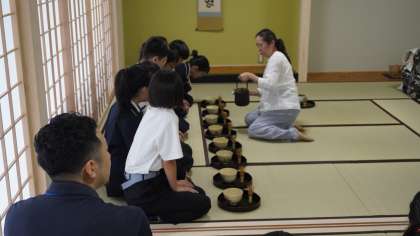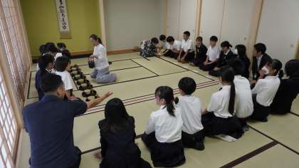 6年生茶道体験【6年2組】 公開日 2025/06/25 更新日 2025/06/25 6年生 6年生では茶道体験を行っています。 歴史を学習している6年生は、今後学習する室町文化でも出てくる茶道を体験しました。 作法を学び日本の伝統文化を知ります。 互いにお茶をたてふるまっていました。