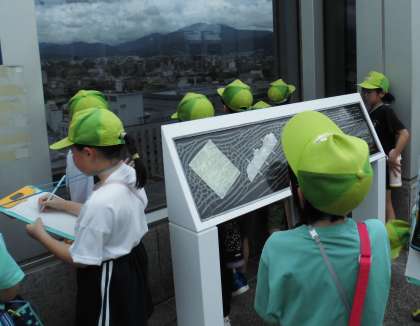 天気が心配されましたが、雨が降ることなく、京都駅から京都の街並みを見ることができました。北の方位に山があることや、南の方位には高速道路があることなど、社会科「京都市の様子」で学習したことを思い出しながら、見学しました。