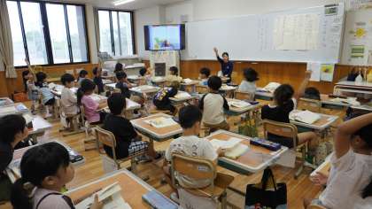 1年3組は国語の学習。
