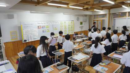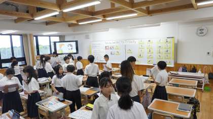 後期課程の英語科の先生も一緒に授業に入って取り組んでいました。