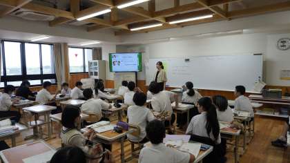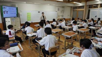 7年2組は英語の時間。 様々な疑問詞について学習しています。