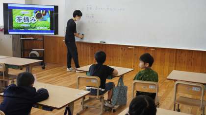 『こいぬのビンゴ』や『茶摘み』をリズムに乗って表現していました。
