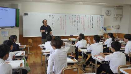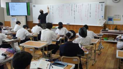 7年2組は国語の学習。 比喩表現の使い方について学んでいました。
