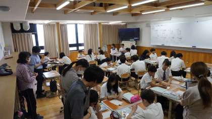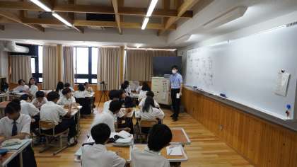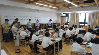 本校でも前期課程の先生が他の学校や研修施設に研修に行っていますが、義務教育学校ならではの取組として、後期課程の先生の授業を参観することもできるようにしています。