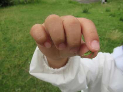 「バッタを見つけた!」「四つ葉のクローバーがあったよ!」と、