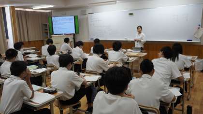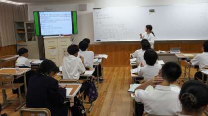 8年2組は数学の時間。