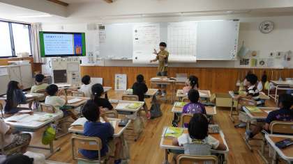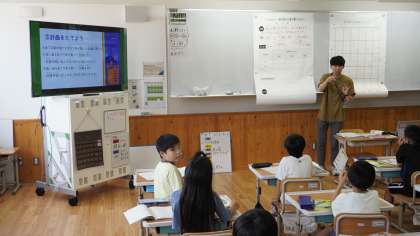 風の強さと車の動く距離の実験を行うために実験方法を確認していました。