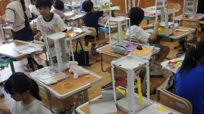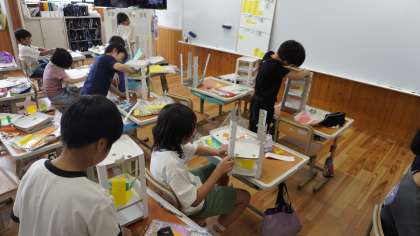 『コロコロガーレ』の作品キットを利用してビー玉を転がして遊ぶおもちゃ作りです。