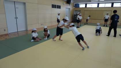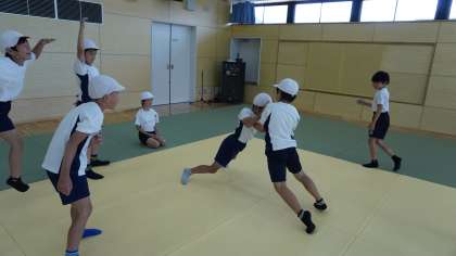 本日の授業の様子≪4時間目_4年3組≫ 公開日 2025/07/02 更新日 2025/07/02 4年生 4年3組は体育の学習。 すもう遊びの単元です。 外は暑いので、エアコンの効く武道場で行っています。 「はっけよーい。のこった。」
