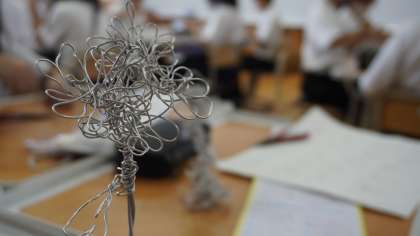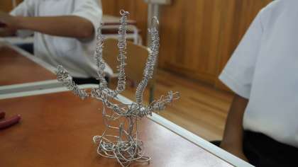 5年2組は図工の学習。 針金を使った作品も完成が近づいています。