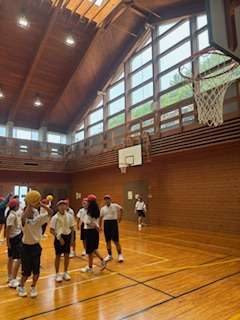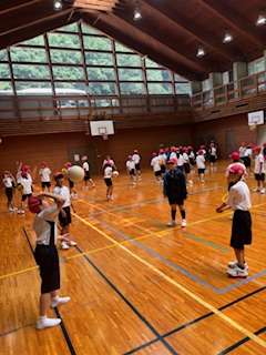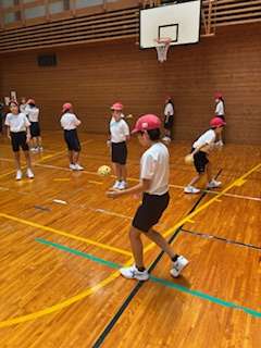 ボールなどを使ってグループの友だちと体を動かしています。