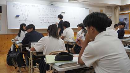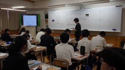 本日の授業の様子≪5時間目_9年2組≫ 公開日 2025/07/07 更新日 2025/07/07 9年生 9年2組は数学の時間。 2次関数のグラフについて学んでいます。 それぞれ各自で書くことができるでしょうか。