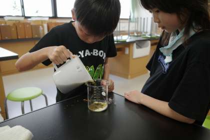 サイエンスクラブでは、吸水ポリアーを利用して、氷よりも溶けにくい「保冷剤」を作成していました。どの子も興味津々、主体的に取り組む様子が見られました。