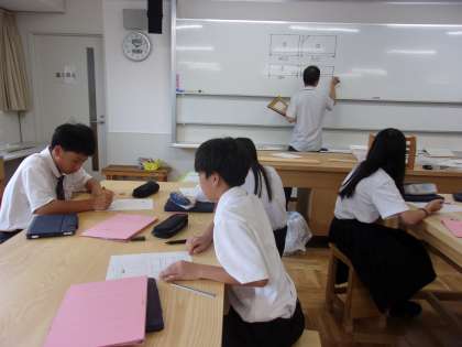 後期1組は「技術」の授業です。 一所懸命に設計図を書いていました。