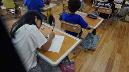 4年2組は交通安全の標語づくりを行っています。 どんな標語が完成するでしょうか。
