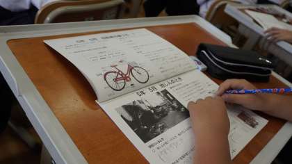 自転車の乗り方や災害が起こったときの行動について確認しています。