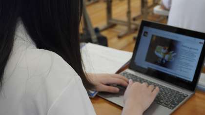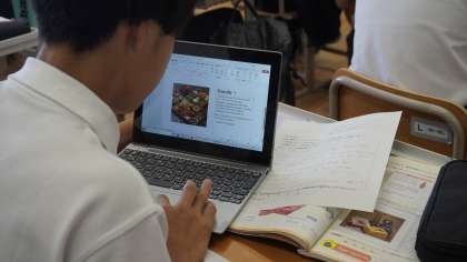GIGA端末を活用して、英語でパンフレットづくりをしています。
